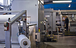 Die Konfektionierung erfolgt auf einer Längs- und Querschneidelinie der Fa. Robust.